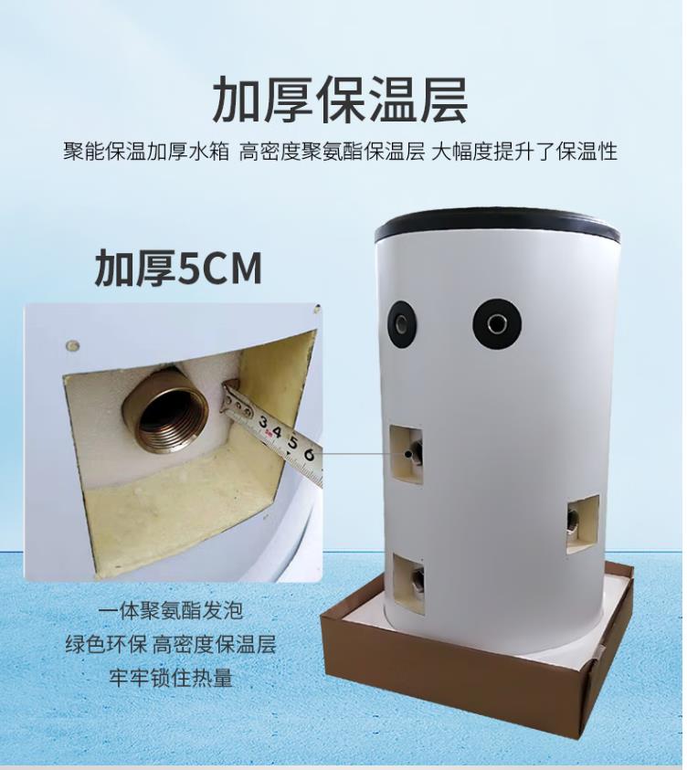 4、水箱采用高密度聚氨酯保溫材料,用德國高壓發泡技術一次成型,保溫效果好。