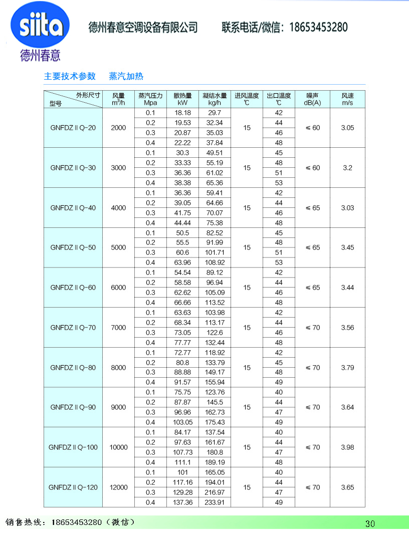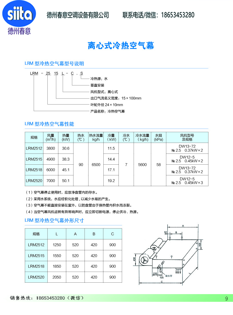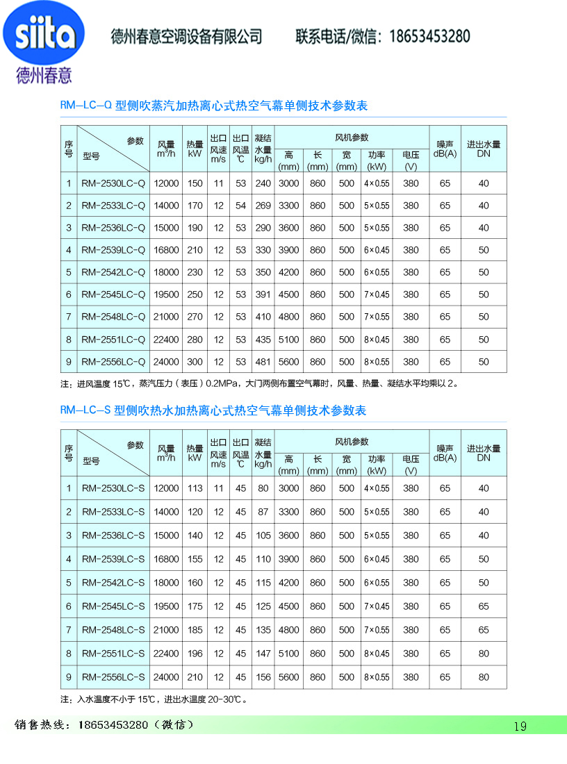 風幕機暖風機參數(shù)樣本