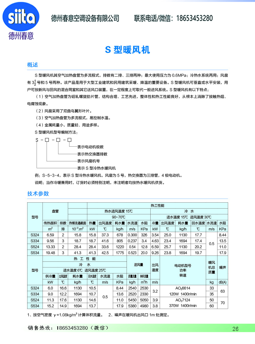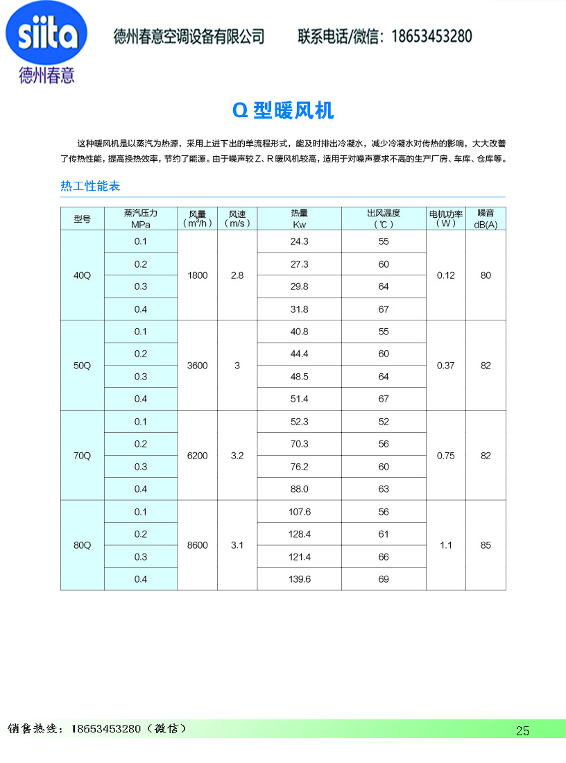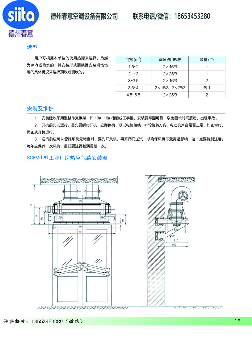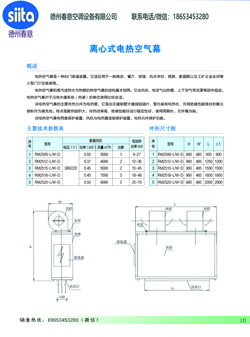 風幕機暖風機參數(shù)樣本
