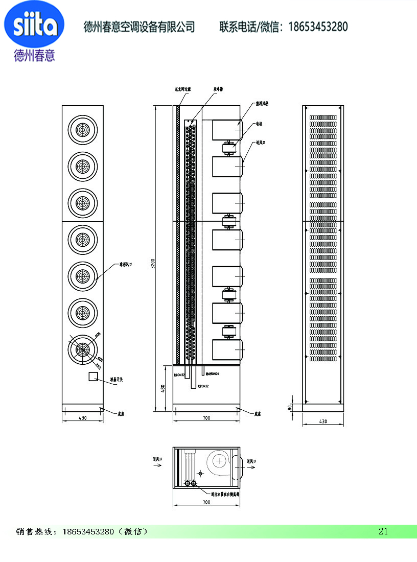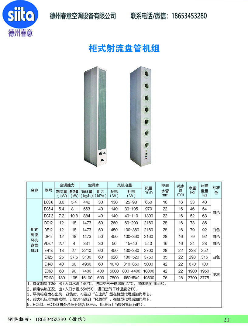 柜式射流盤管機組參數(shù)尺寸
