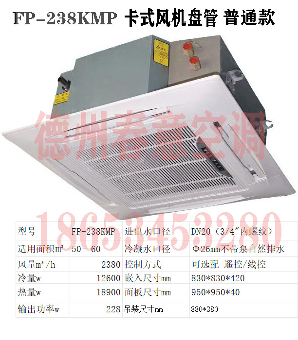 普通款卡式風機盤管,四出風,嵌入式型號規格參數表     普通款卡式風機盤管(通常指不帶遙控、不帶內置水泵、或僅為基礎功能的基礎型卡式風機盤管),是中央空調末端的入門級機型,在成本、功能和安裝靈活性上做了簡化,核心特點如下: